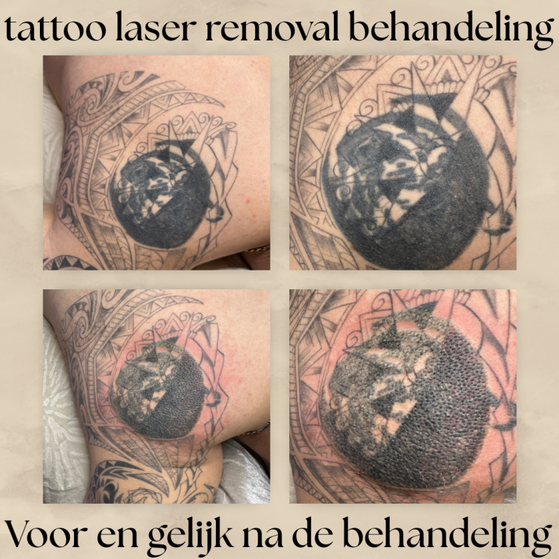 • De tatoeage vervaagt geleidelijk na elke behandeling. Gemiddeld zijn er meerdere sessies nodig met tussenpozen van 6-8 weken voor een optimaal resultaat.